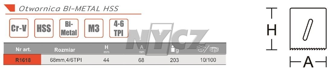 Wykonanie ze stali HSS M3, Bi-Metal.